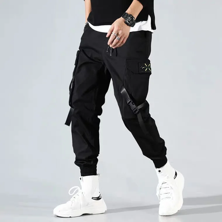 Джоггеры мужские с лентами, брюки-карго, повседневные тренировочные...
