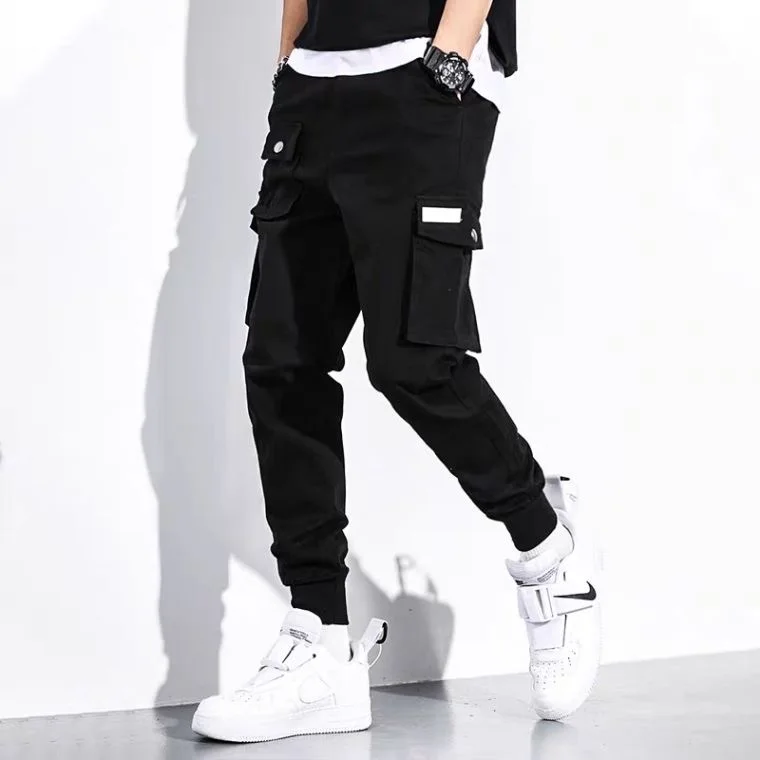 Брюки-карго мужские, черные, спортивные, в стиле Харадзюку