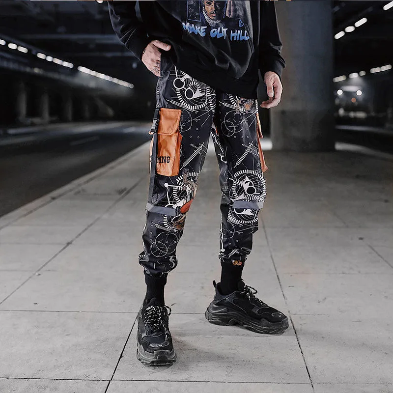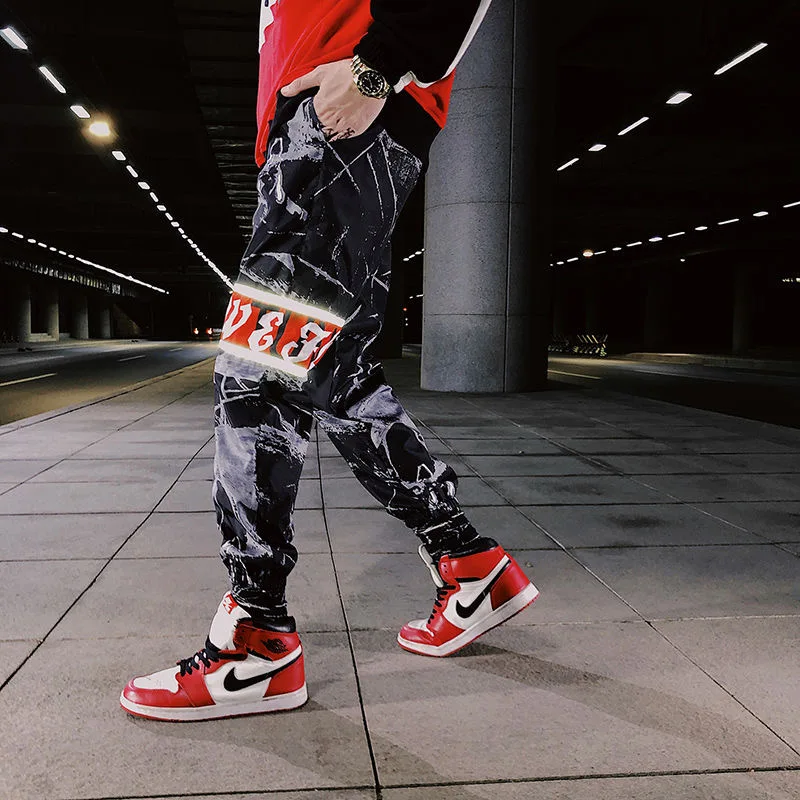 Свободные спортивные повседневные штаны для мужчин, шаровары с принтом в виде комиксов, треники в стиле хип-хоп