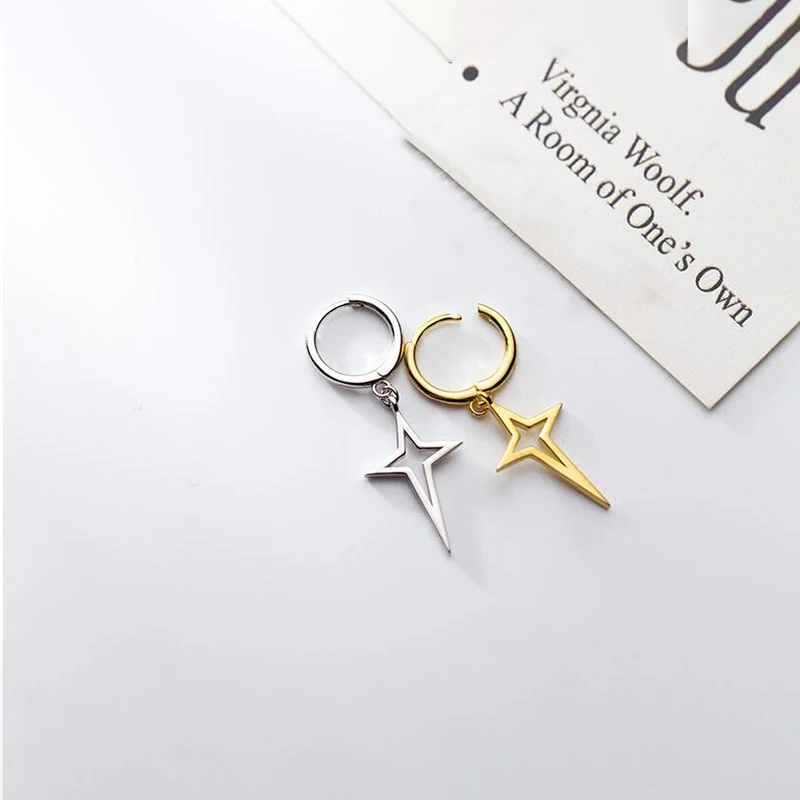 ANENJERY, 925 пробы, серебряные серьги для предотвращения аллергии, геометрические, полые, звезда, крест, подвеска, серьги-кольца для женщин, S-E1087