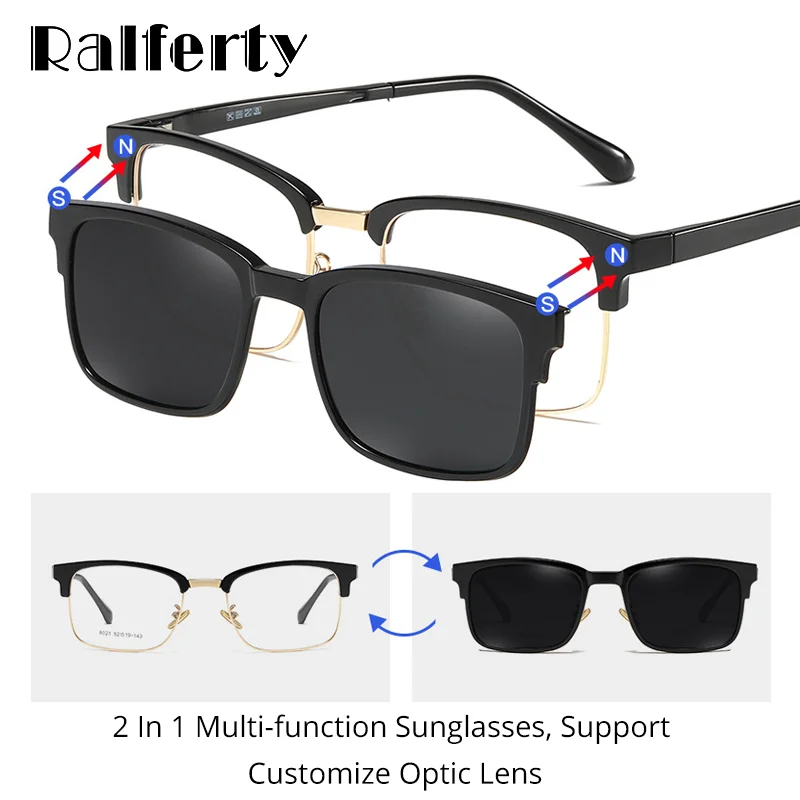 Ralferty, 2 в 1, многофункциональная оптическая оправа, магнитные солнцезащитные очки, очки, мужские, поляризационные, на застежке, очки, квадратные, Z8021