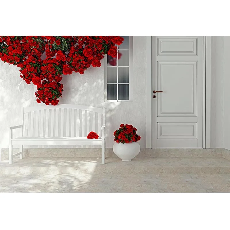 Фон для фотосъемки с изображением белого стула двери красных цветов лозы Свадебная фотостудия дети фотографический фон lv1588