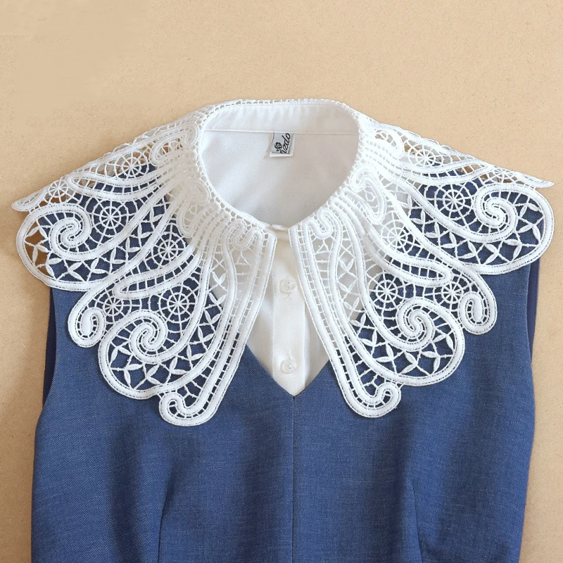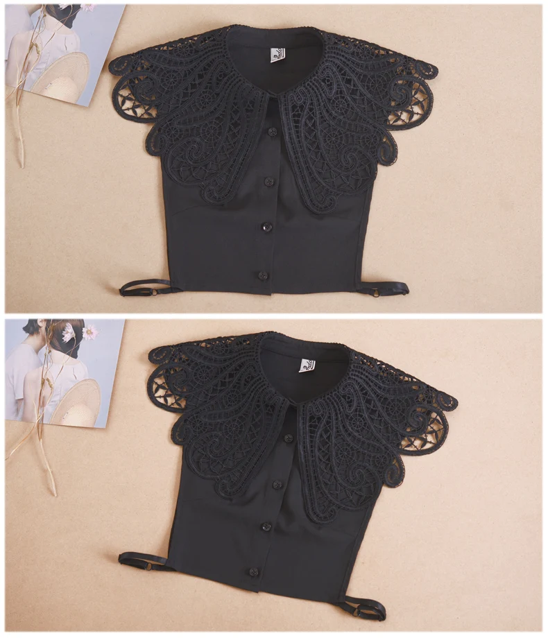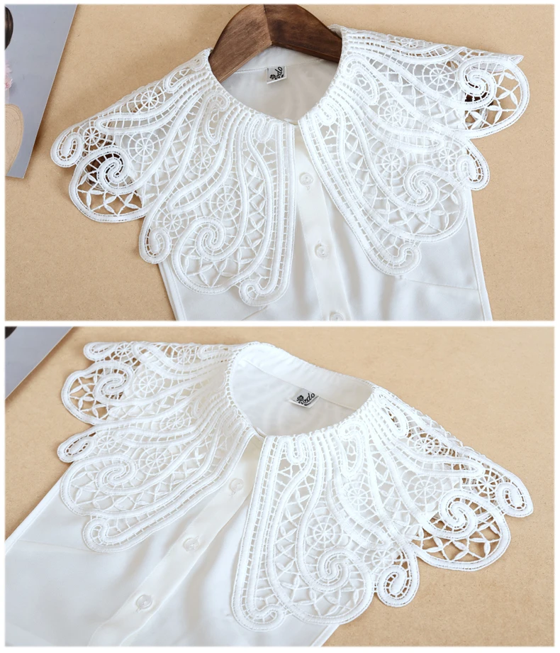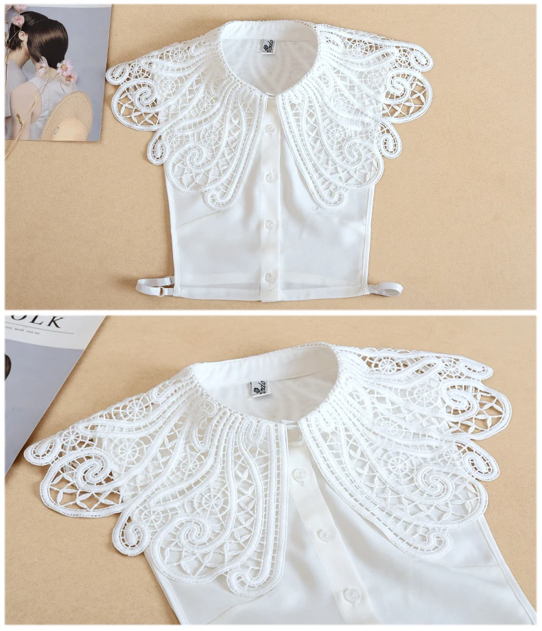Женская рубашка с большими отворотами, белая рубашка со съемным воротником, Женская кружевная рубашка с фальшивым воротником, съемная полурубашка