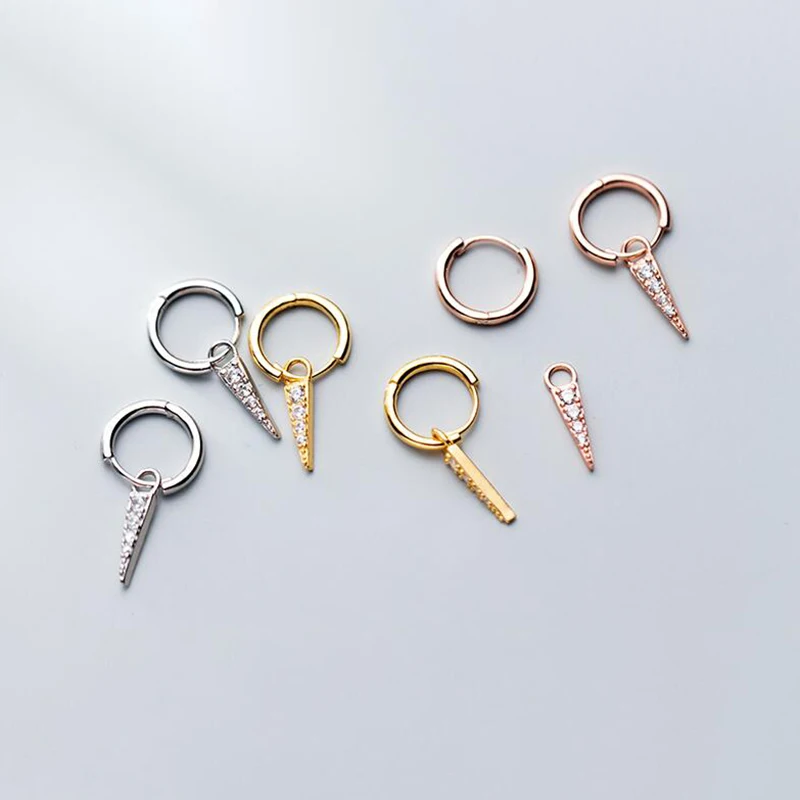 ANENJERY, 925 пробы, серебряные серьги для предотвращения аллергии, изящные, с цирконием, подвеска, маленькие серьги-кольца для женщин, S-E1084