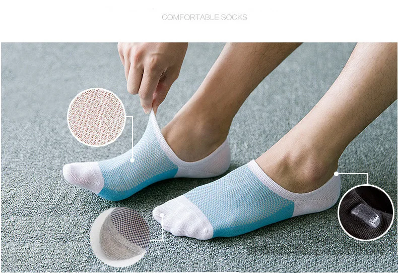 Мужские невидимые носки, модные хлопковые носки, сетчатые невидимые...