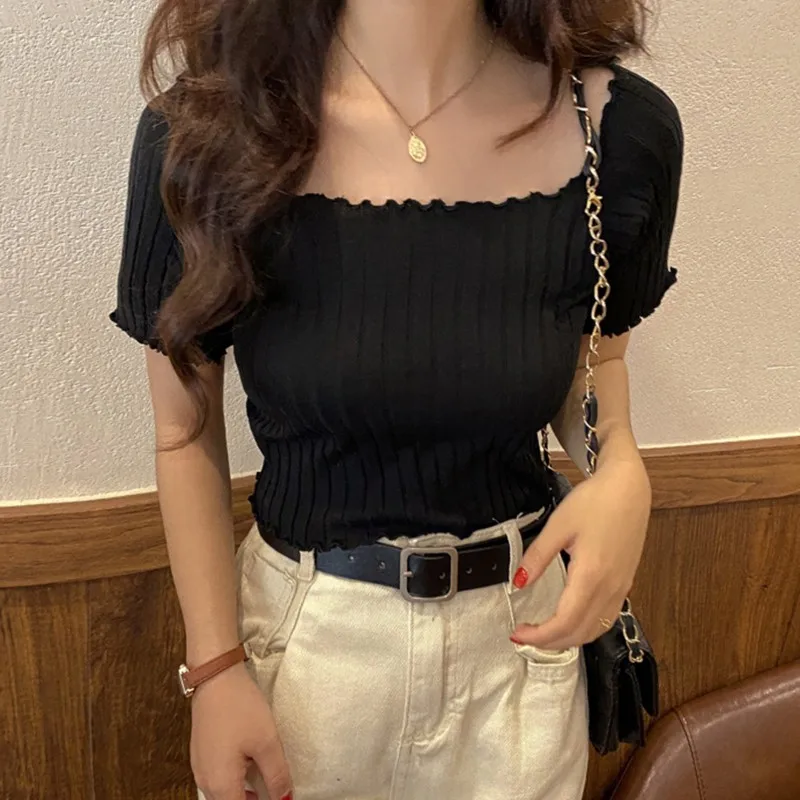 Летняя футболка, Женская Повседневная однотонная Трикотажная футболка с вырезом-лодочкой, футболка с коротким рукавом, топ, Новинка 1
