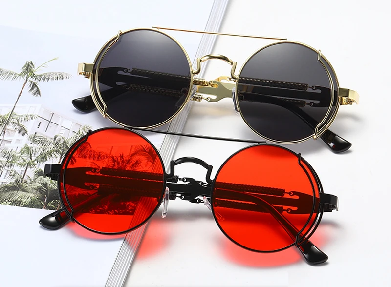 Солнцезащитные очки Peekaboo для мужчин и женщин, винтажные солнечные аксессуары в круглой металлической оправе в стиле стимпанк, с черными, красными, uv400, для вечерние, 2020
