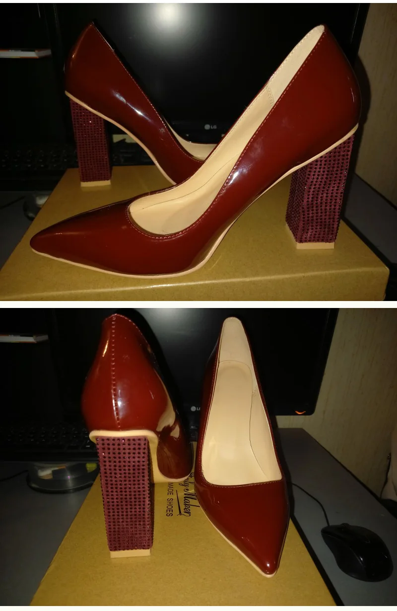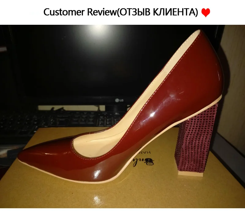 Женские лакированные туфли Onlymaker стразы на квадратном каблуке 10 см, винные туфли без застежек, простые элегантные туфли с острым носком