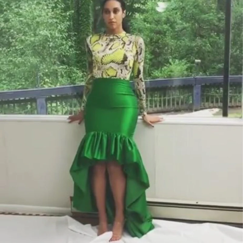 Модные длинные юбки, зеленые атласные юбки, Женская юбка с баской, Женская юбка на заказ