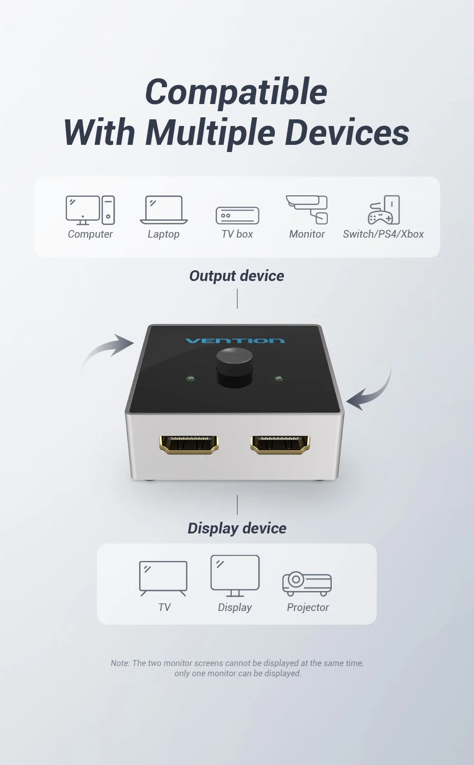 HDMI-разветвитель Vention, 4K, 60 Гц, двухнаправленный, 1x22x1, HDMI-переключатель, 2 в 1, для HDTV Box PS43