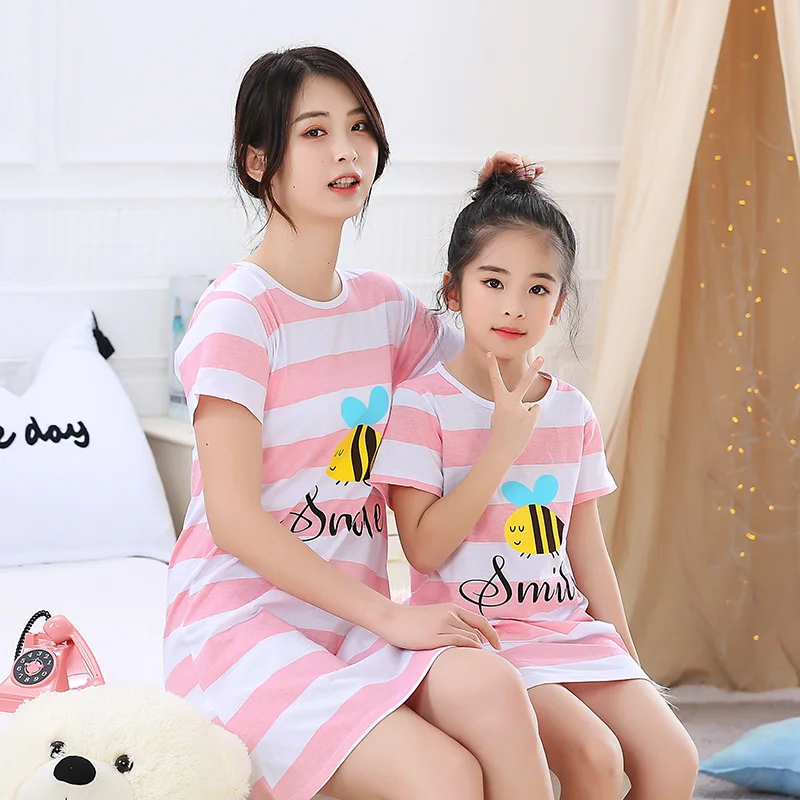 Хлопковая ночная рубашка для девочек, летнее платье с короткими рукавами, Детская Пижама, одежда для сна для родителей и детей, Подростковая Пижама с героями мультфильмов