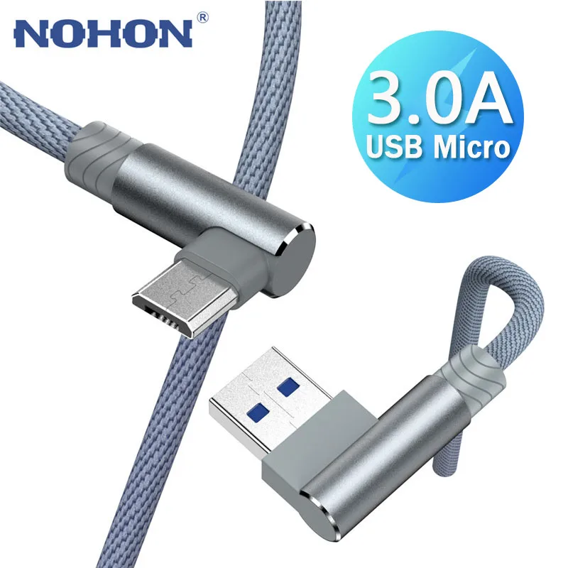 Кабель для быстрой зарядки Micro USB, 1 м, 2 м, 3 м, 90 градусов, для Xiaomi Redmi, Huawei, Samsung S7, Android мобильный телефон, оригинальный кабель для передачи данных