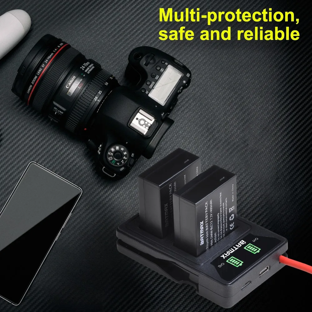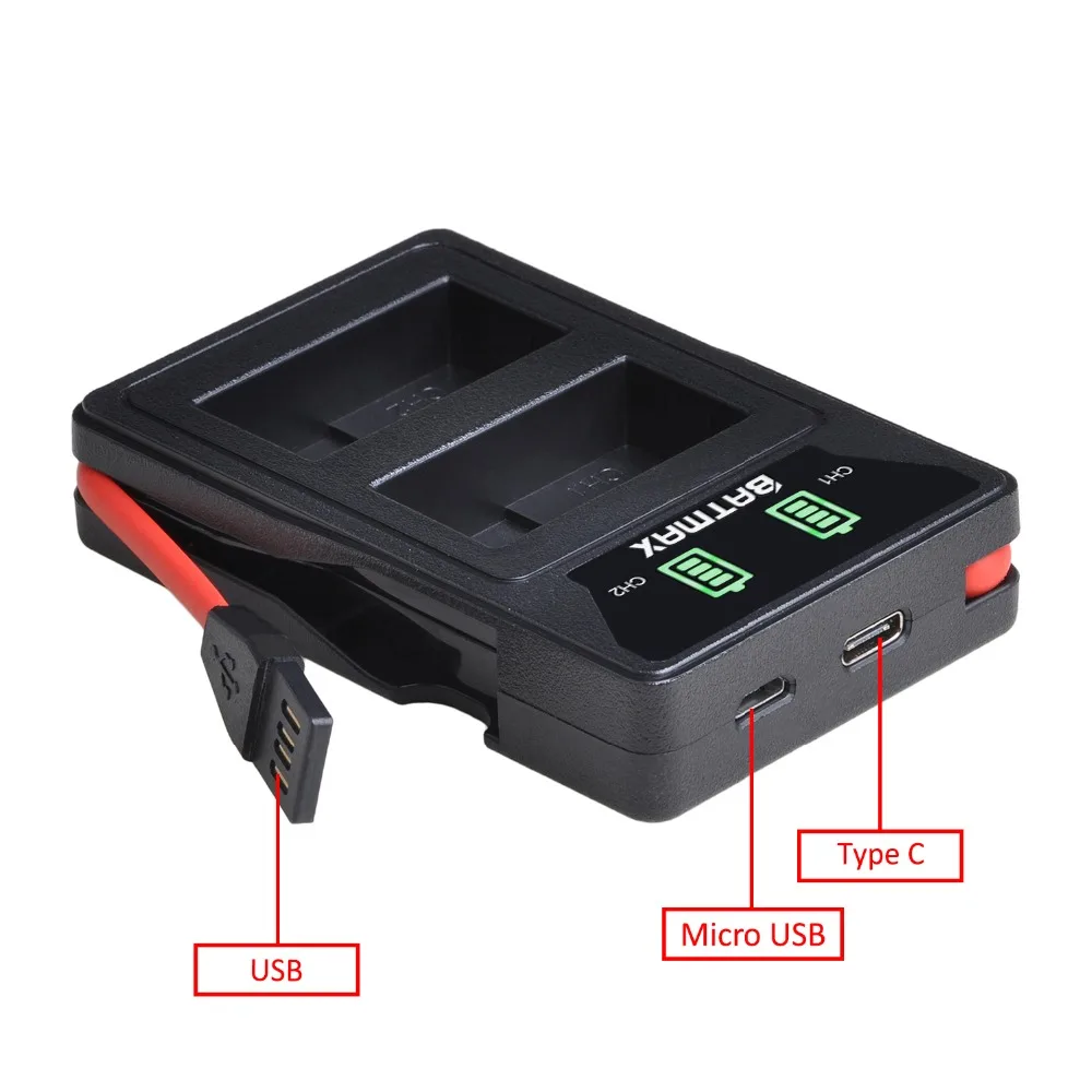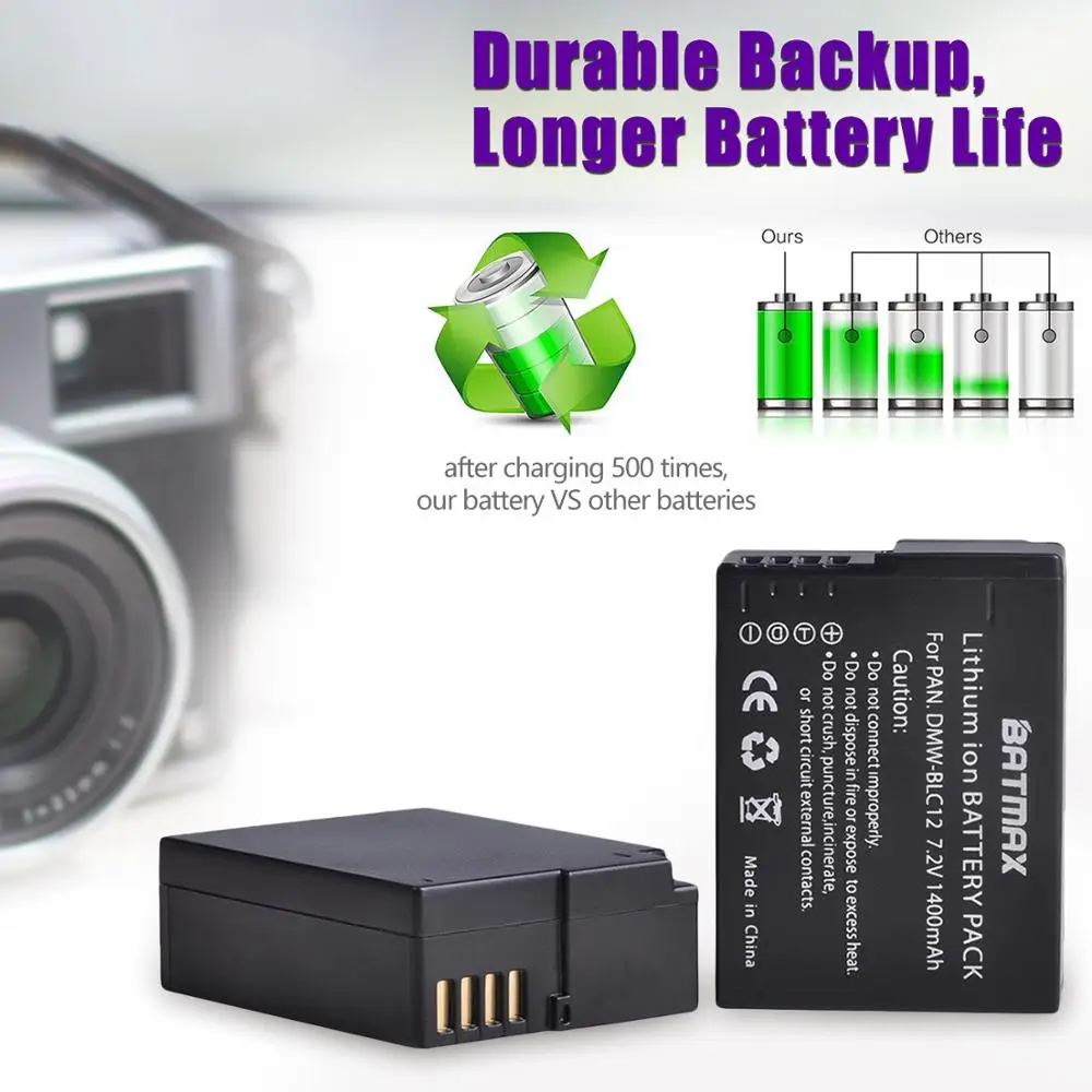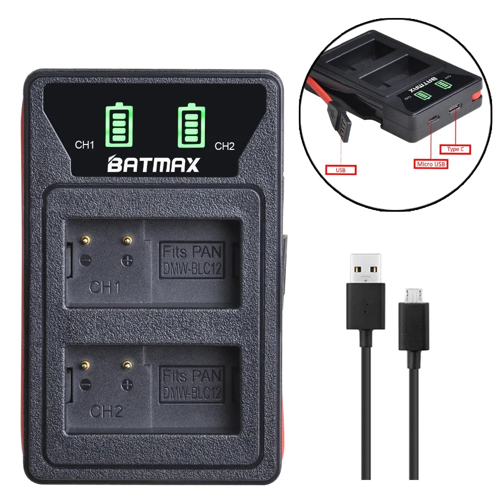 Аккумулятор Batmax DMW-BLC12 BLC12E + новое двойное зарядное устройство со светодиодной подсветкой и портом Type-C для Panasonic FZ1000,FZ200,FZ300,G5,G6,G7,GH2
