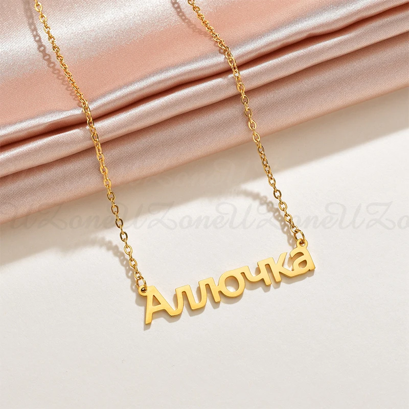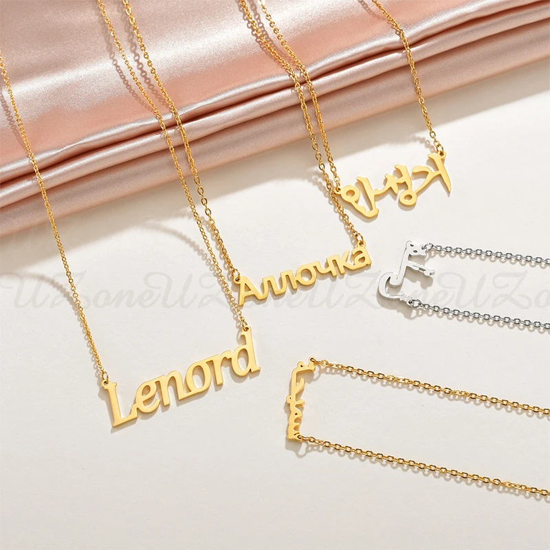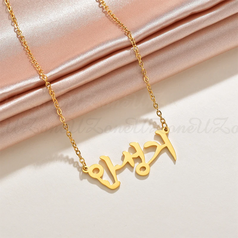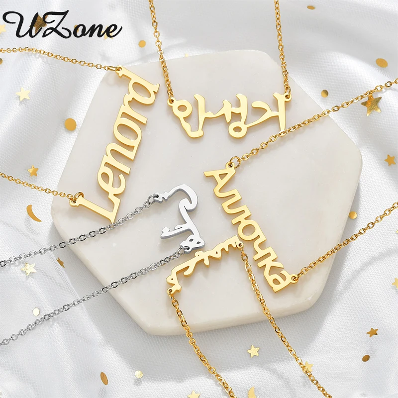 Ожерелье UZone с арабским именем, ожерелье из нержавеющей стали, русский, корейский, итальянский, ожерелья с именной табличкой на заказ для женщин, оптовая продажа