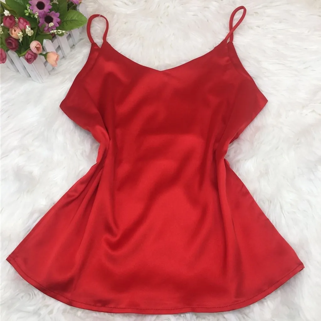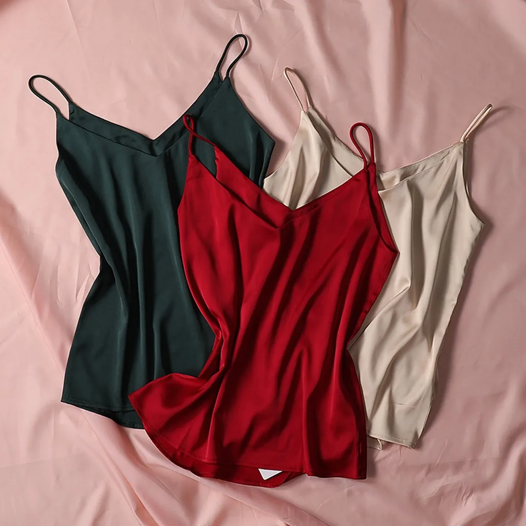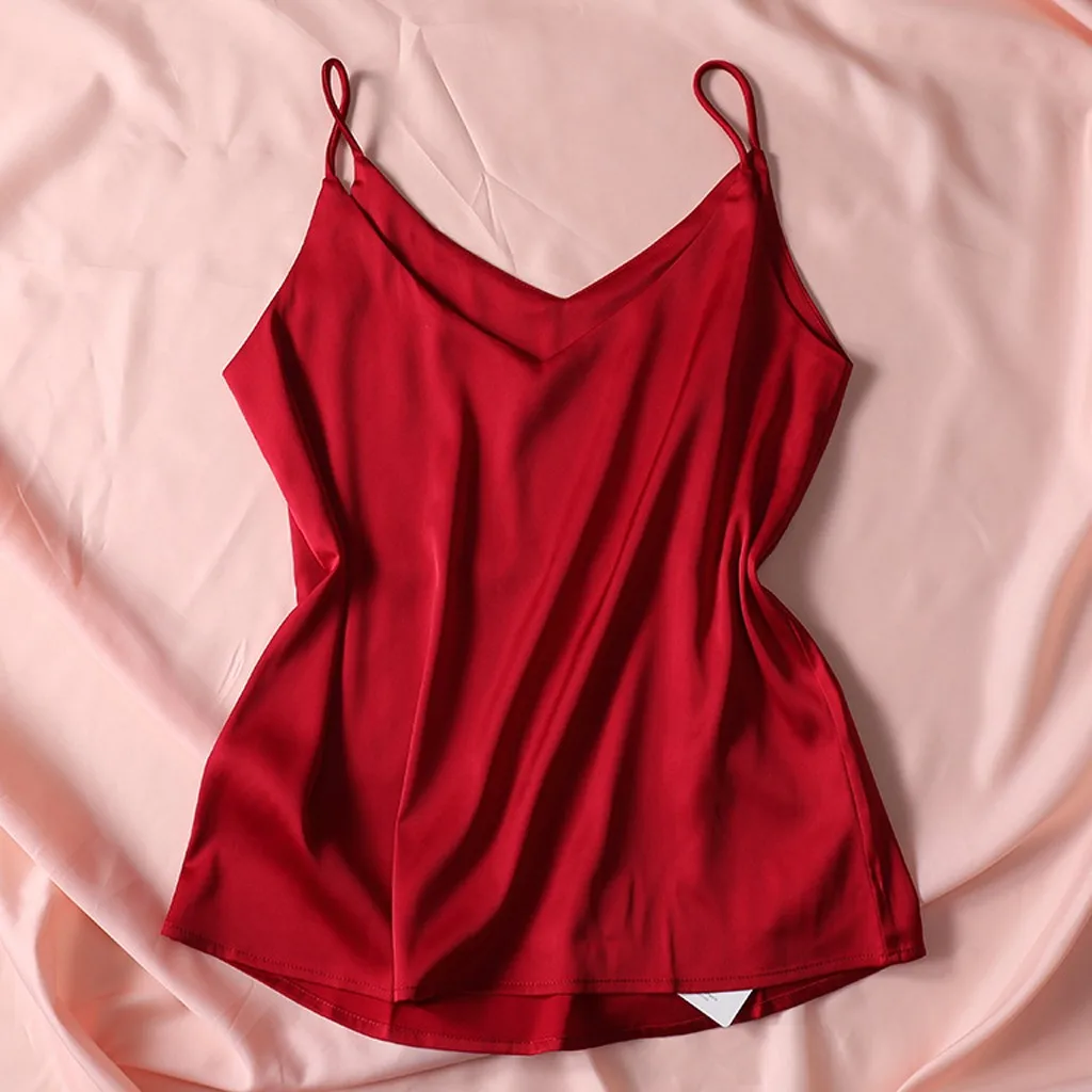 Топ на тонких бретельках Женский, атласный, Шелковый, с V-образным вырезом, без рукавов, летний, размера плюс, 2020