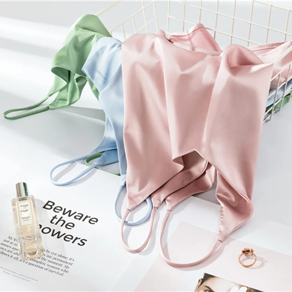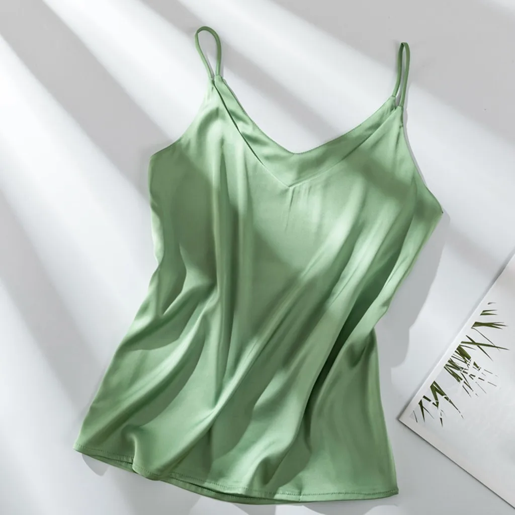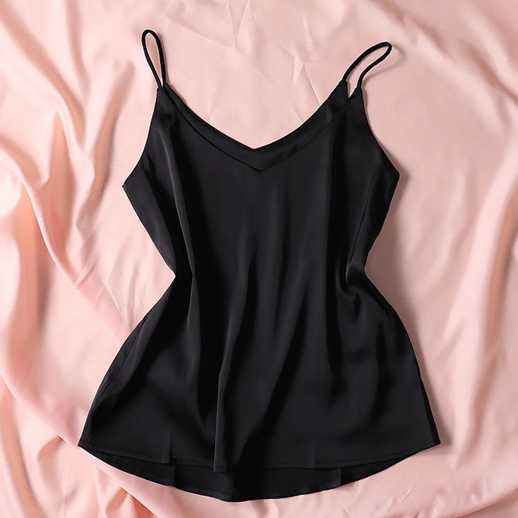 Топ на тонких бретельках Женский, атласный, Шелковый, с V-образным вырезом, без рукавов, летний, размера плюс, 2020