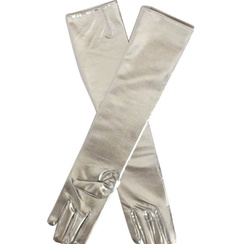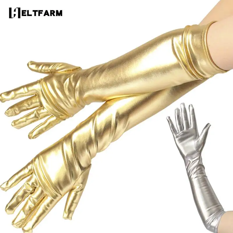 Золотые, серебряные перчатки металлик из искусственной кожи с мокром эффектом, перчатки для вечеринок и выступлений, женские сексуальные длинные латексные перчатки длиной до локтя
