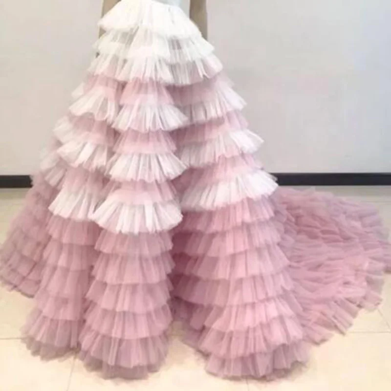 Красивая Белая и розовая пышная многослойная юбка с оборками, длинные юбки из тюлевой ткани, Женская юбка на молнии, реальное изображение, длинная юбка-пачка для невесты, индивидуальный пошив