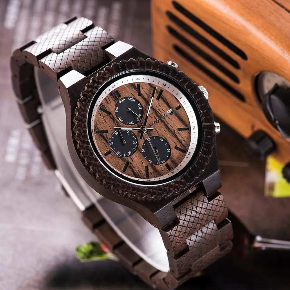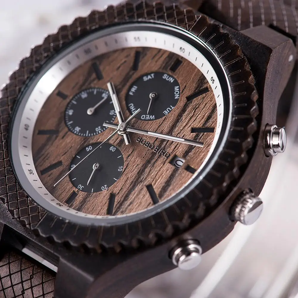 Деревянные часы BOBO BIRD для мужчин, кварцевый хронограф, мужской ...