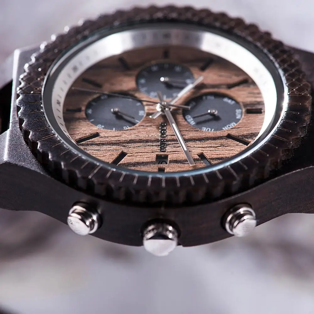 BOBOBIRD Роскошные деловые мужские часы с деревянным секундомером и...