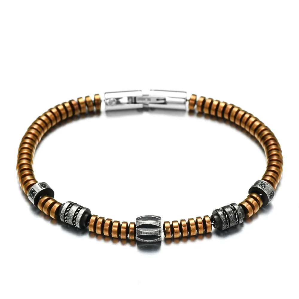 Браслет из гематита, кофейного и золотого цвета, из нержавеющей стали 316L