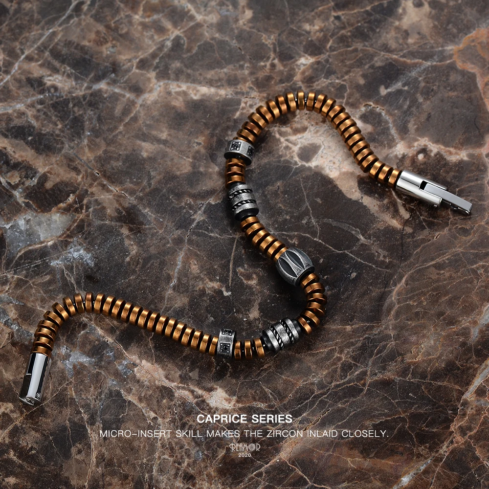 Браслет REAMOR из гематита уникального серебряного цвета, золотые б...