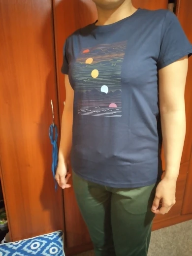 Очень понравилась футболка, трикотаж тонкий, но не просвечивает. На лето просто отлично. Спасибо большое!!! ⭐⭐⭐⭐⭐