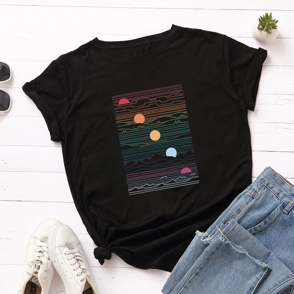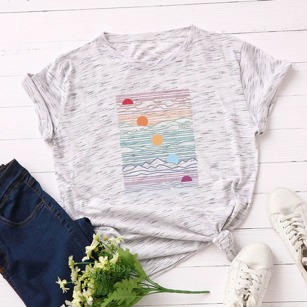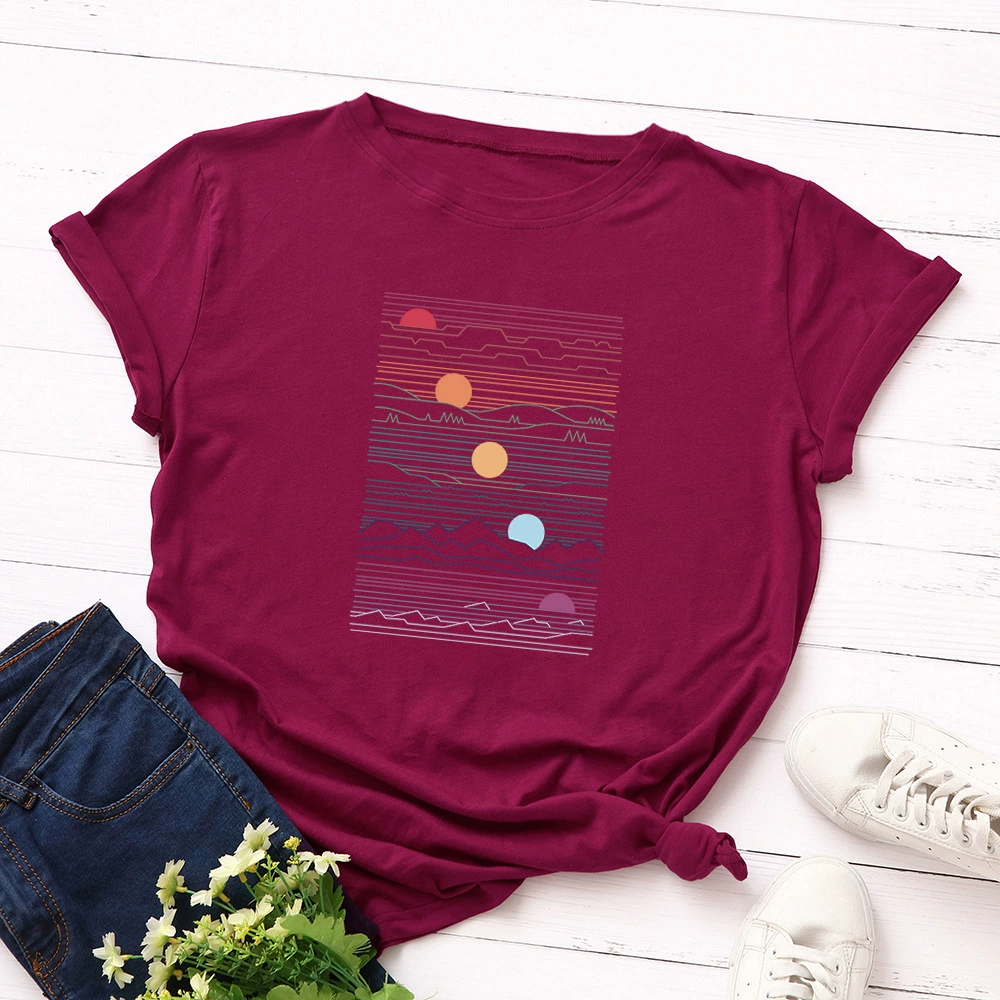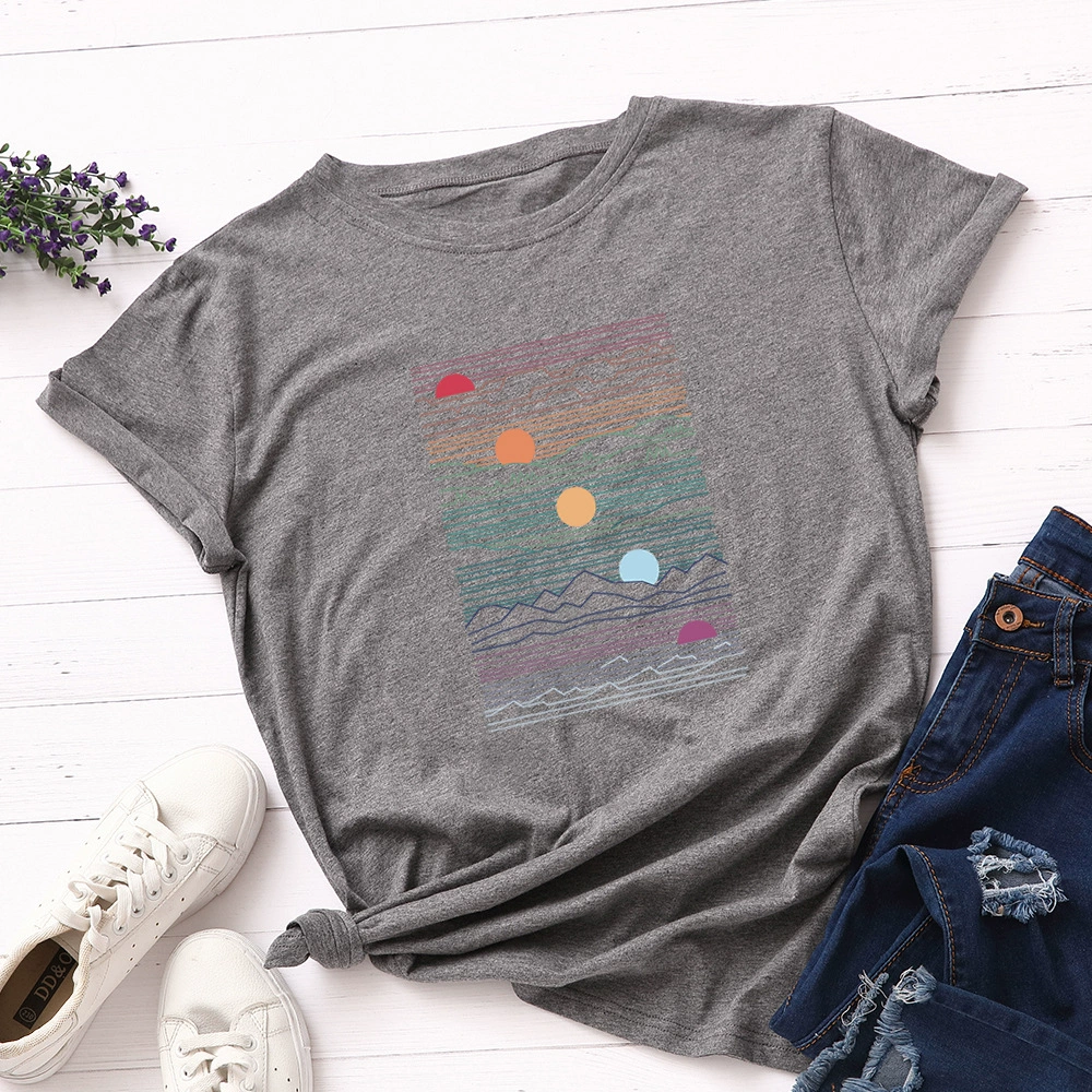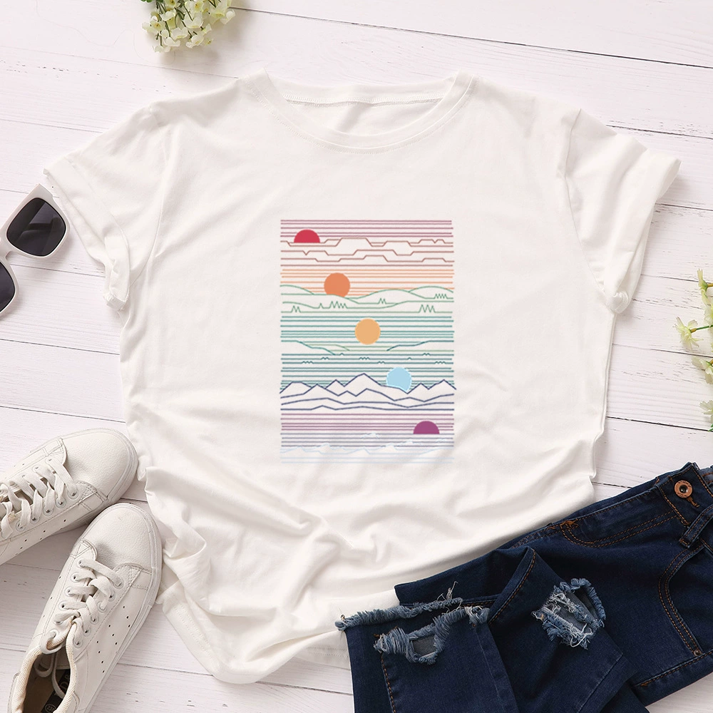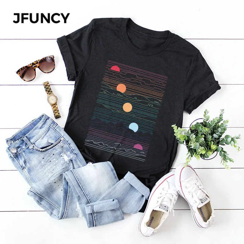 Женская свободная футболка JFUNCY Sunrise, летняя футболка из 100% хлопка с принтом, большие размеры