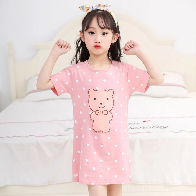 Детская ночная рубашка для девочек, 100% хлопок, с коротким рукавом