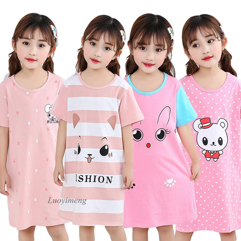 Летняя ночная рубашка для девочек, детские пижамы, хлопковые ночные...