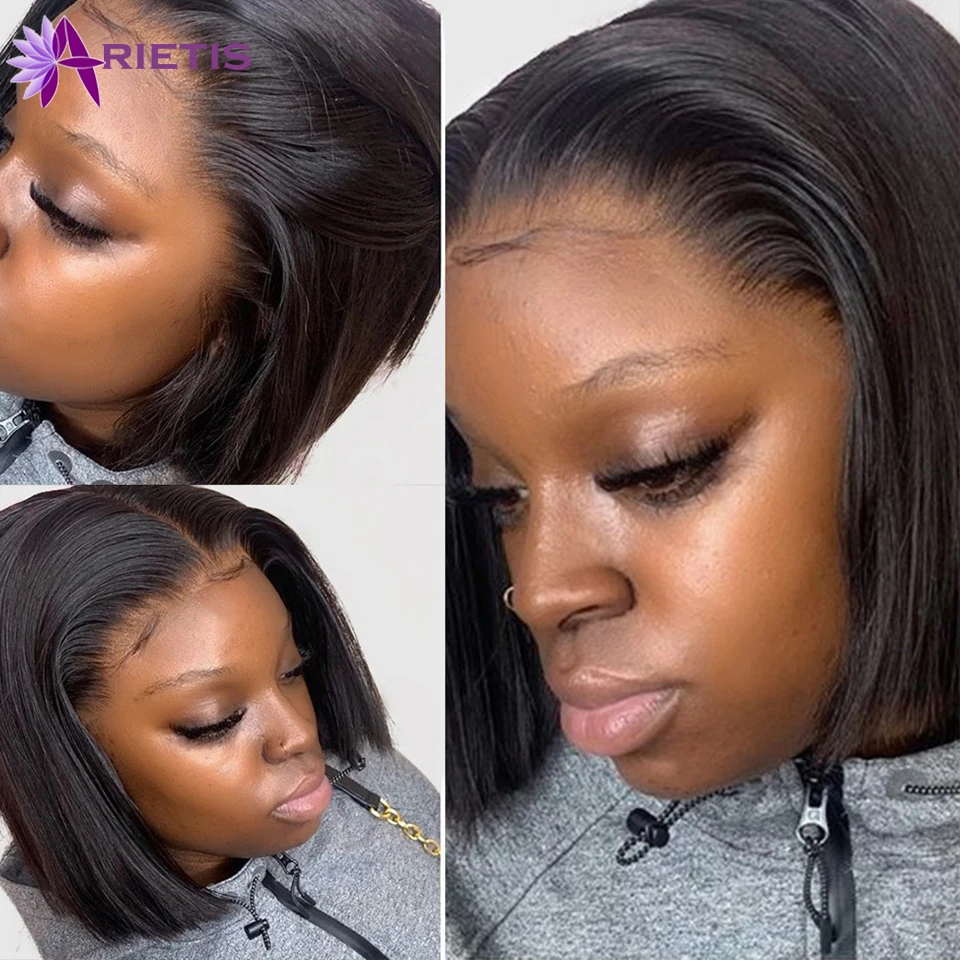 Прямые короткие парики из человеческих волос, парик 13x1 на сетке спереди, парик плотностью 150% 180%, парик на сетке с прямыми волосами, малазийский парик с Реми спереди
