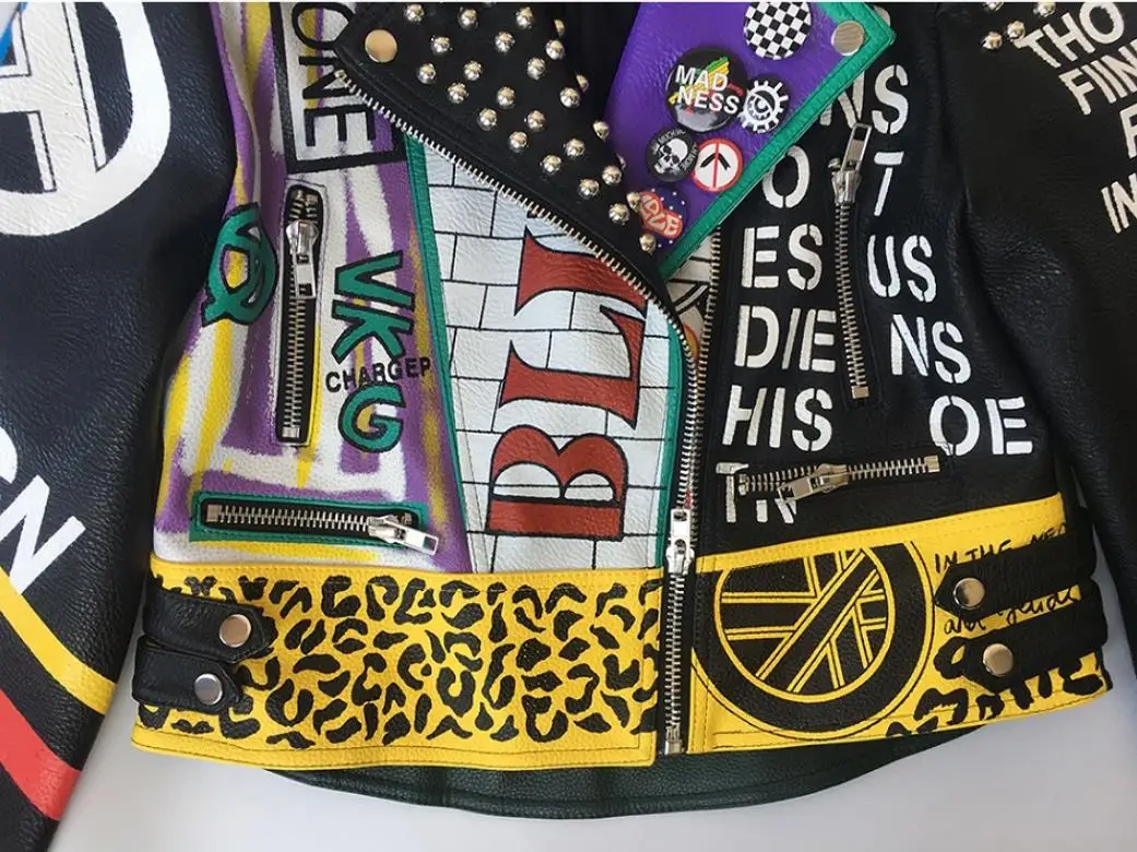 Куртка женская из искусственной кожи, короткая уличная одежда в стиле панк, с заклепками и бисером, с мультяшным принтом для девушек