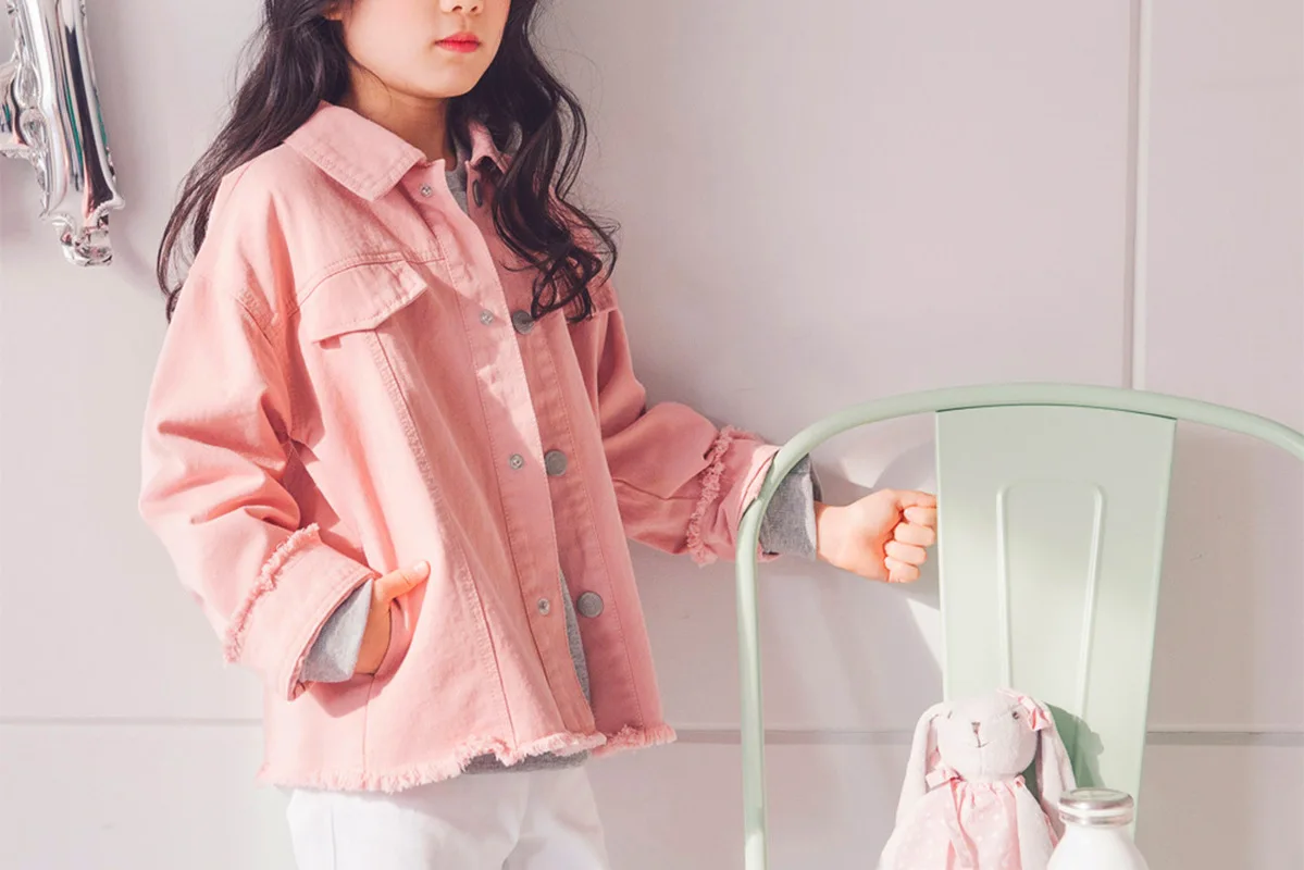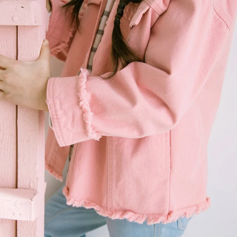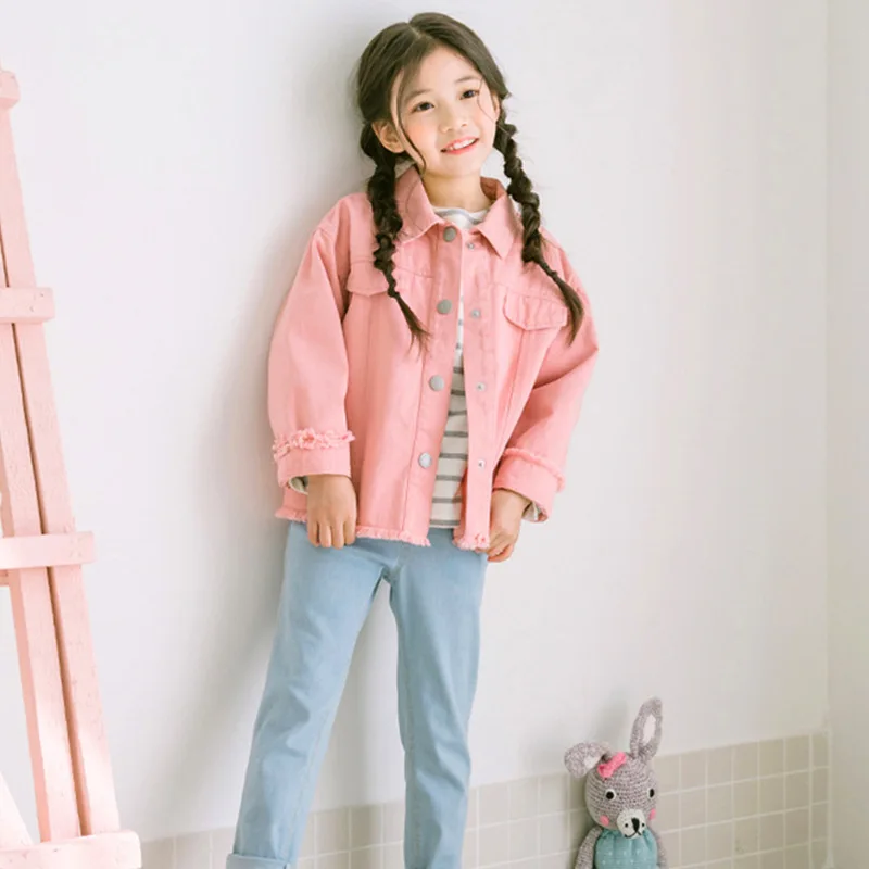 Детские розовые джинсовые куртки для девочек 6, 8, 10 лет, короткое пальто с длинными рукавами и оборками, одежда для девочек-подростков