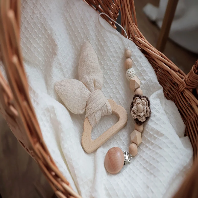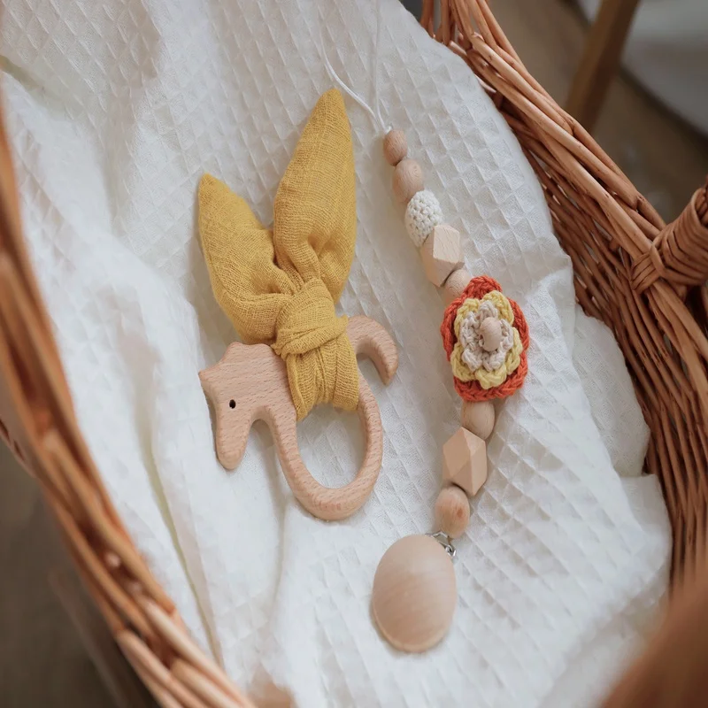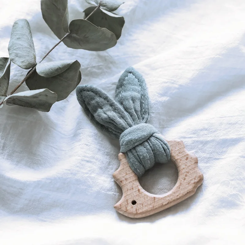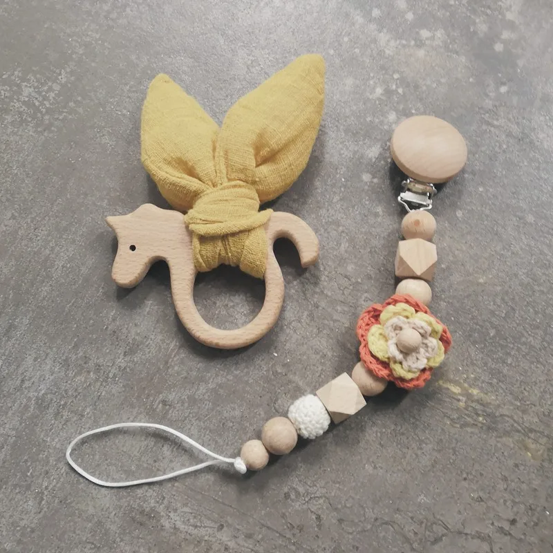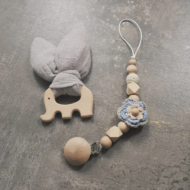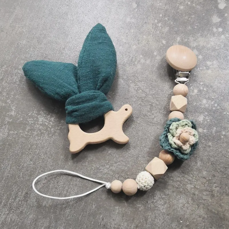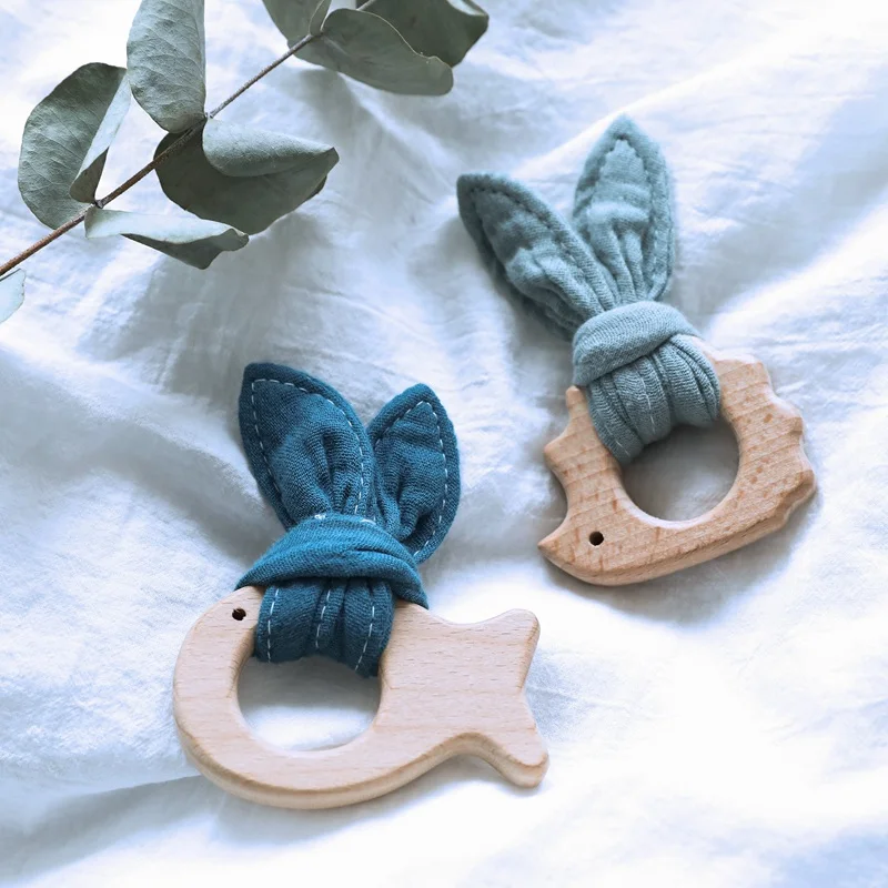 Оптовая продажа, Детские Прорезыватели с заячьими ушками и цепочками-пустышками, деревянные игрушки для прорезывания зубов с животными, игрушки из бука и дерева для игры в грызуны, игрушки для тренажерного зала, детская погремушка