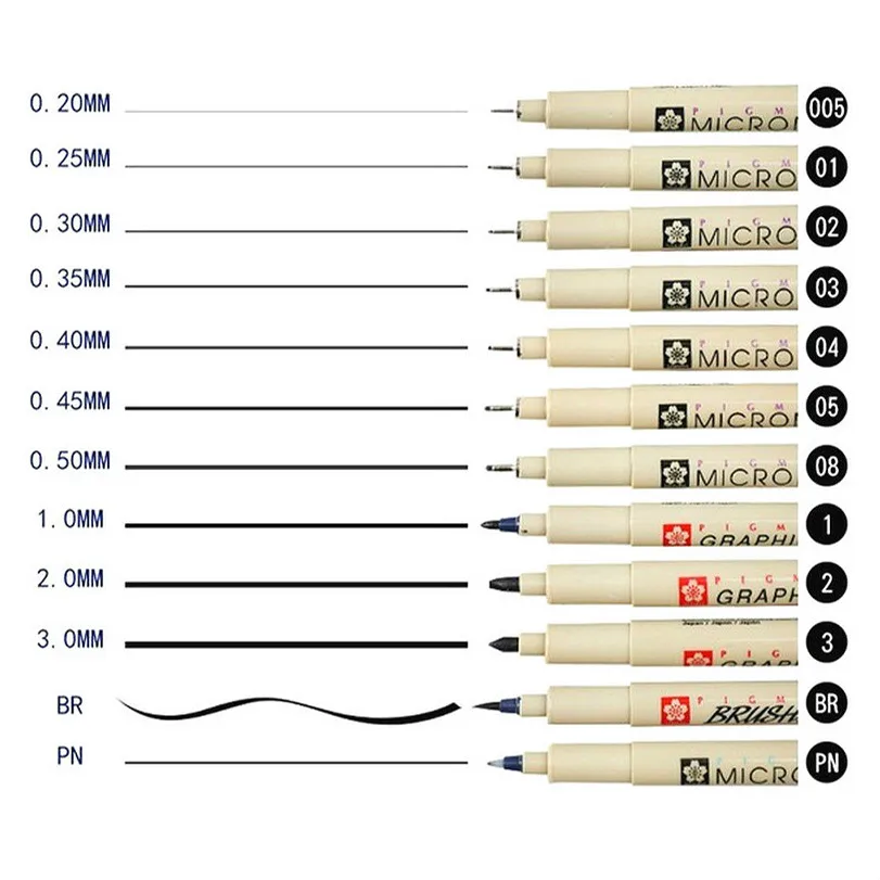 Пигментный лайнер, чернильный маркер, 1 шт., 0,05, 0,1, 0,2, 0,3, 0...