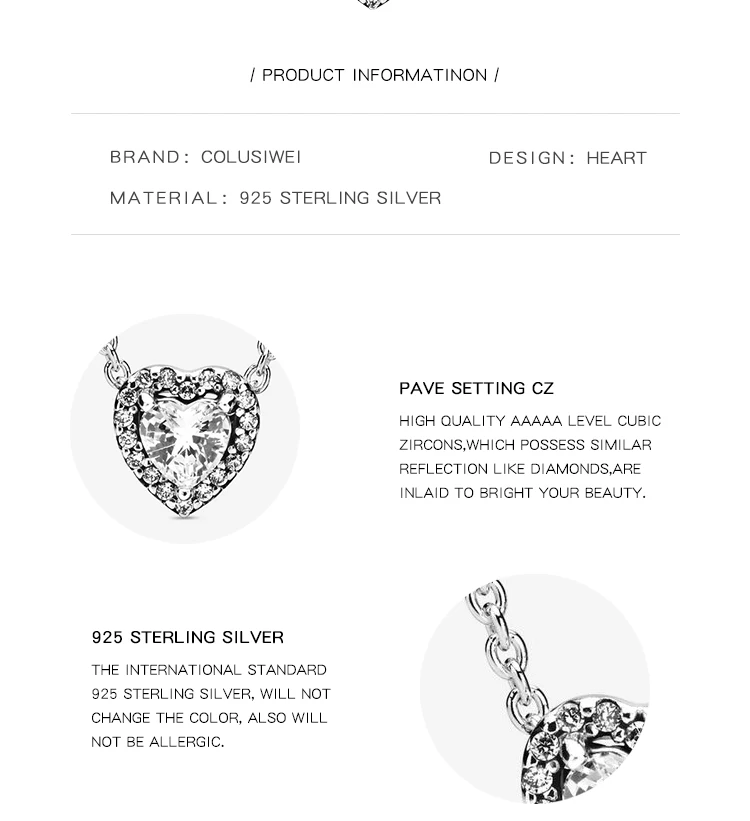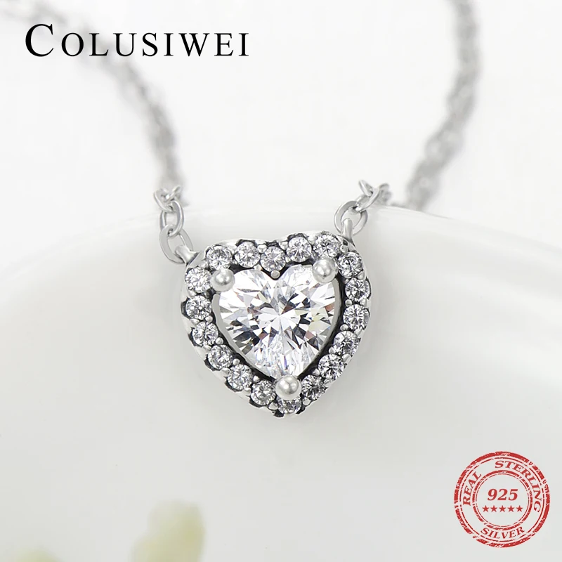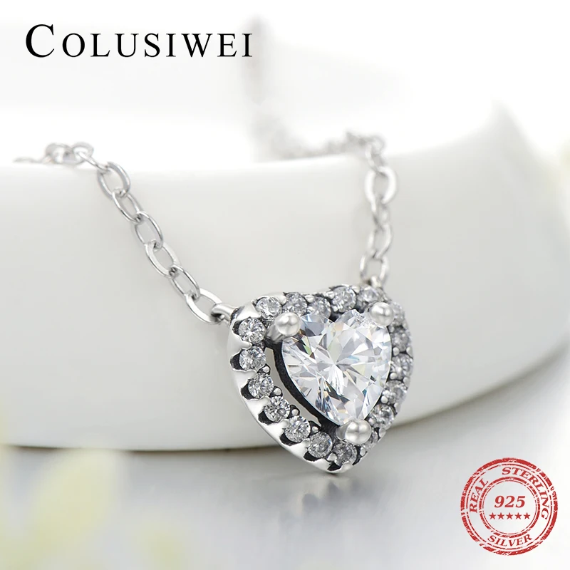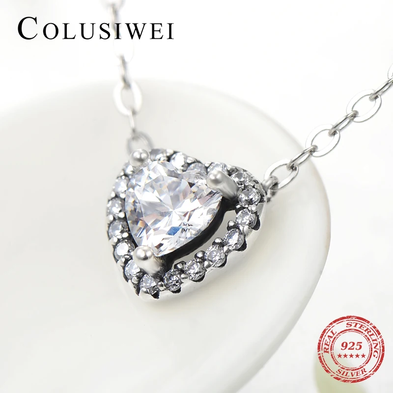 Colusiwei подарок девушке на День святого Валентина настоящее 925 стерлингового серебра сверкающий, стильный элегантный кулон "Сердечко" для женщин, ювелирное изделие для помолвки, свадьбы