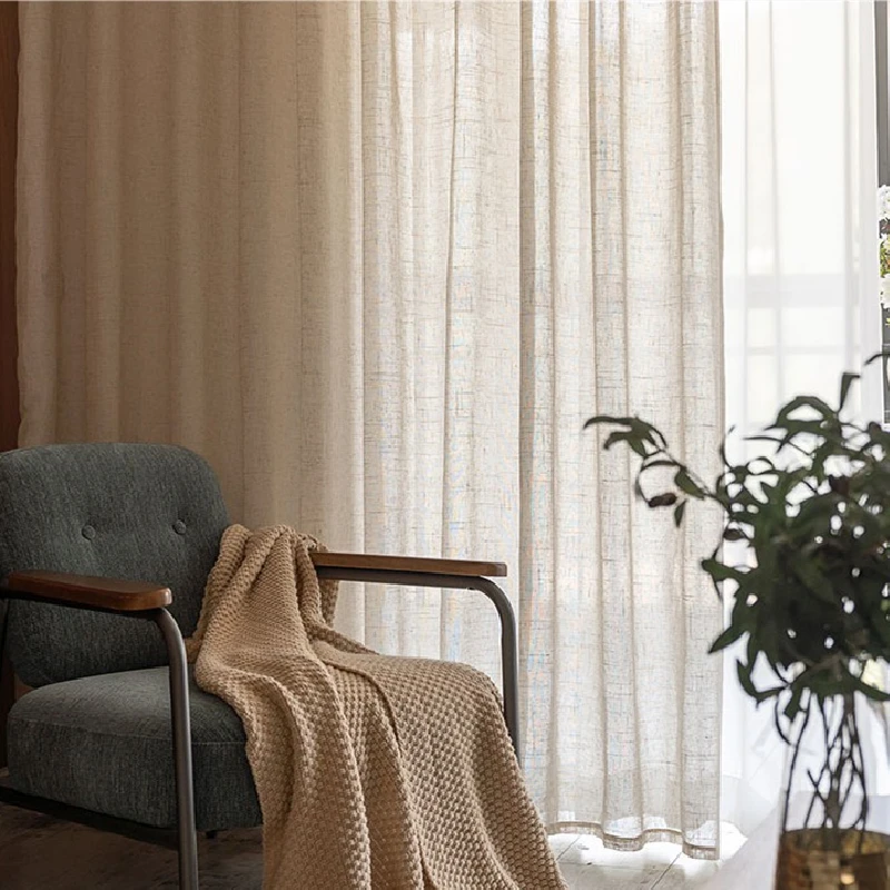 Тонкие тюлевые шторы из плотного хлопка и льна для гостиной, кухни, японские шторы Volie для спальни, украшения, сплошные шторы