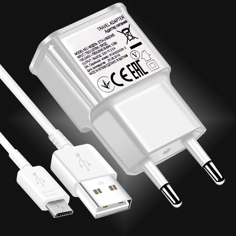 Настенное зарядное устройство с Micro USB, 5 В, 2 А, кабель для пер...