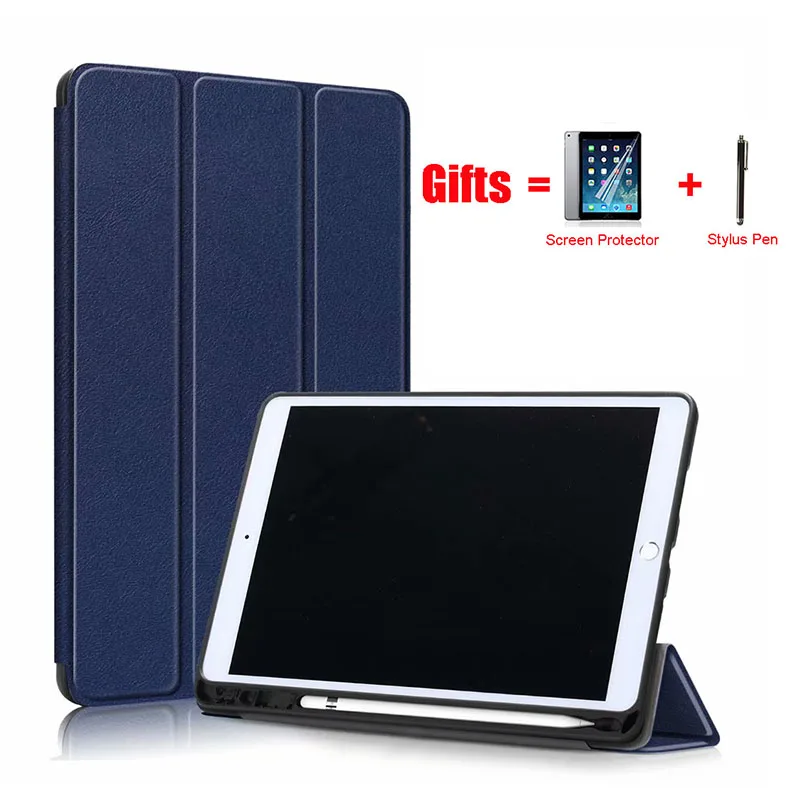 Для iPad 7-го 8-го поколения 10,2 "чехол с держателем для карандашей чехол-подставка для iPad 10,2 2019 2020 чехол с автоматическим выключением из режима сна + защита экрана + ручка