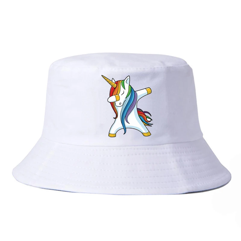 Панама с принтом единорога для женщин и мужчин, Панама с плоским верхом, поп-Кепка в стиле Харадзюку, летняя