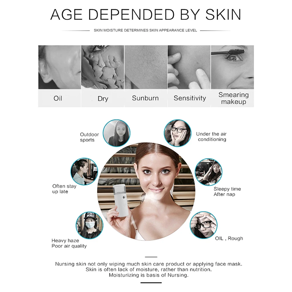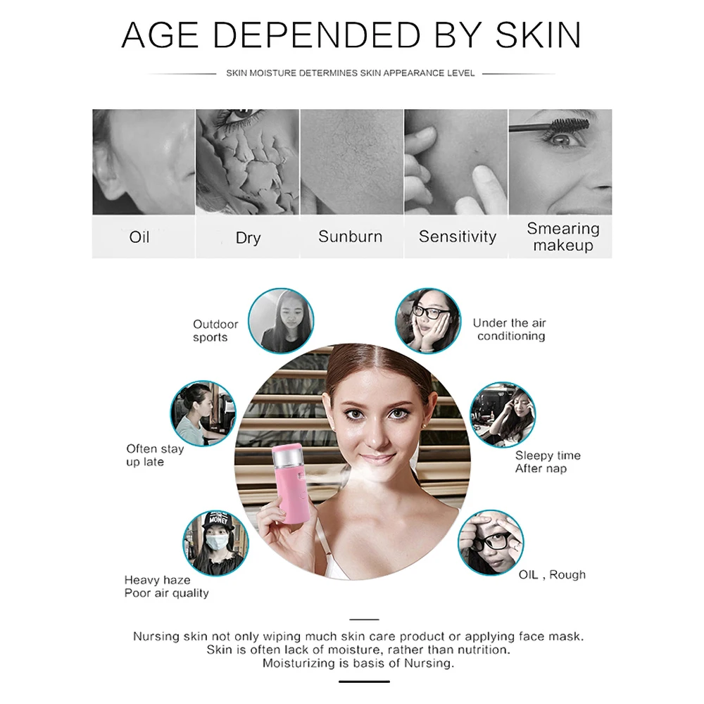 Портативный нано-распариватель для лица с функциями увлажнение лица, распыление, увлажнение, увлажнение, зарядка от USB