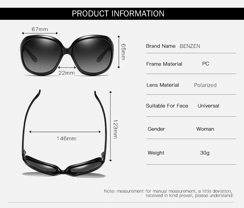 Женские солнцезащитные очки BENZEN, винтажные поляризационные солнцезащитные очки большого размера с защитой от ультрафиолета 400, новинка 6188