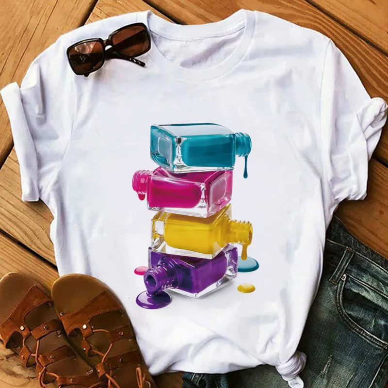 Женская футболка с принтом лака для ногтей Harajuku, летние топы с ...