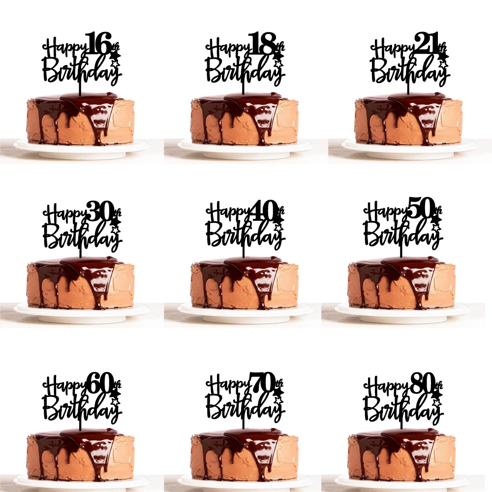 Топпер для торта С Днем Рождения украшение для торта, черный Золотой серебристый цвет, акриловый деревянный Топпер для торта, подарок, топпер для торта 10 16 18 21 30 40 50