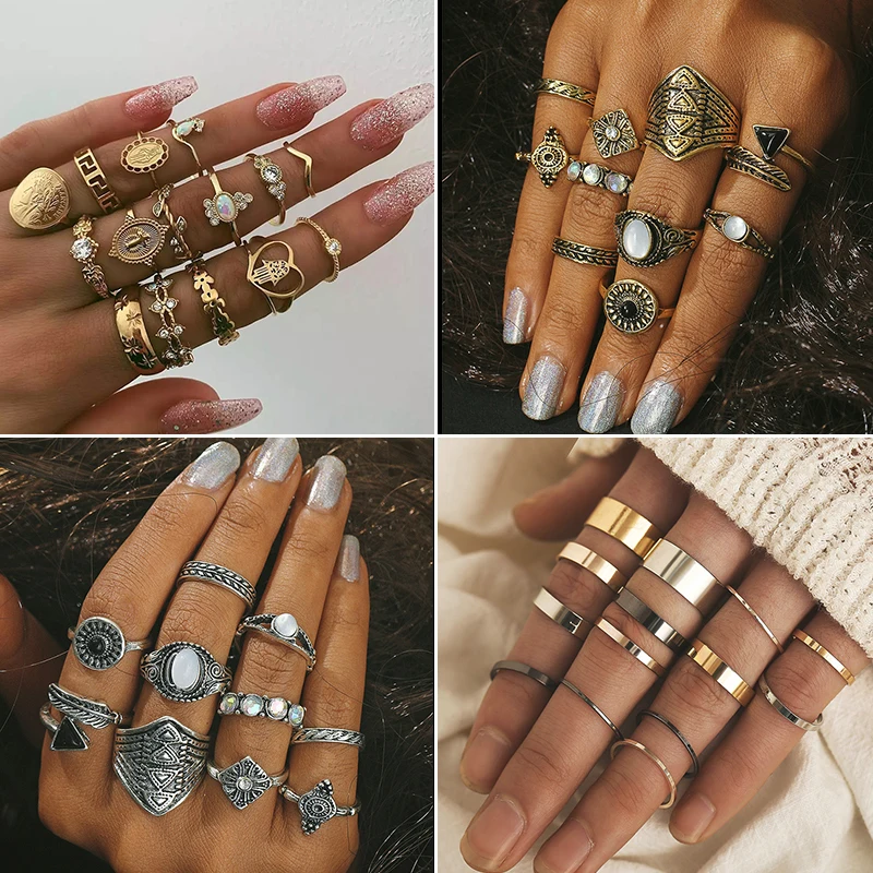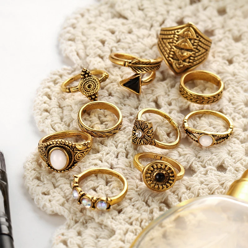 Комплект колец с полым дизайном Женский, винтажный комплект колец г...