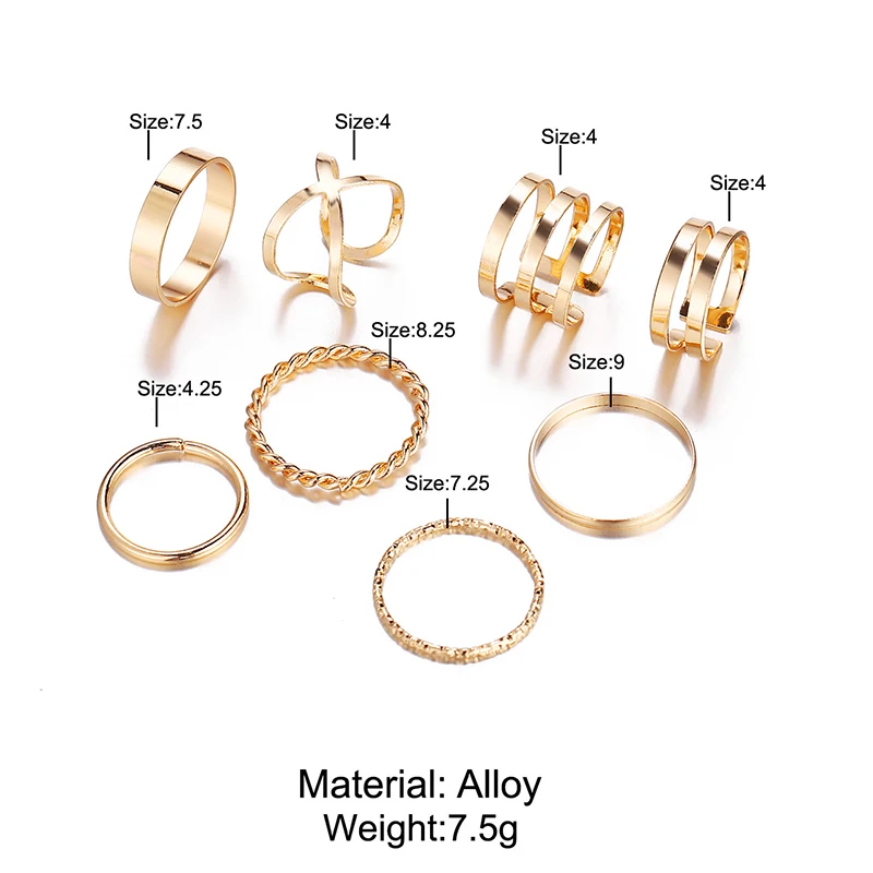 Набор женских колец из металлического сплава в стиле панк, 8 шт.