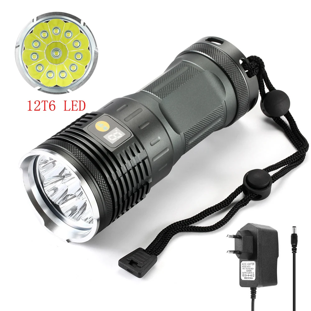 Новый мощный Ультраяркий светодиодный фонарик 12 T6, 80 Вт, высокий люмен, водонепроницаемый, алюминиевый сплав, тактический светодиодный фонарь онарик для кемпинга