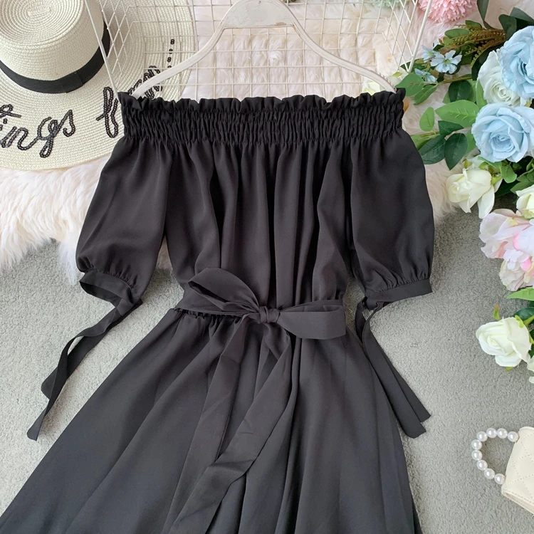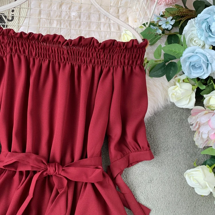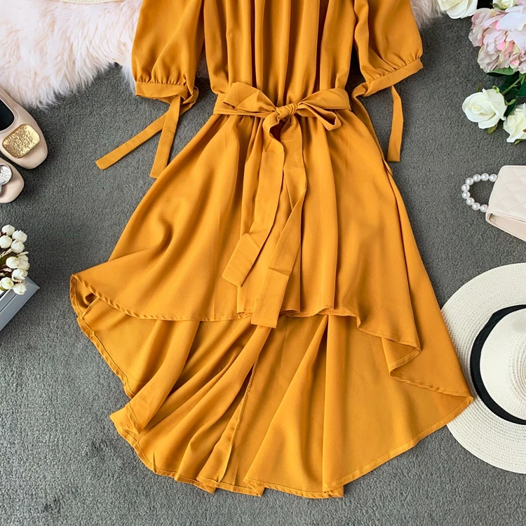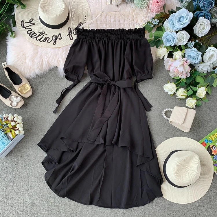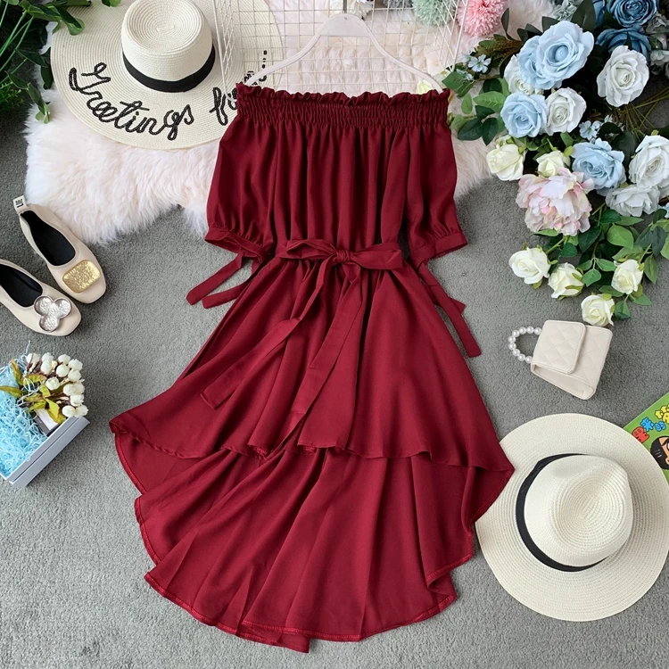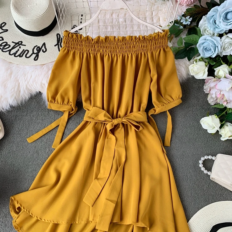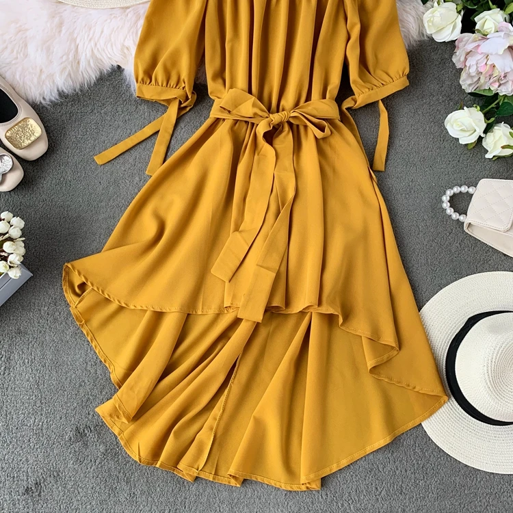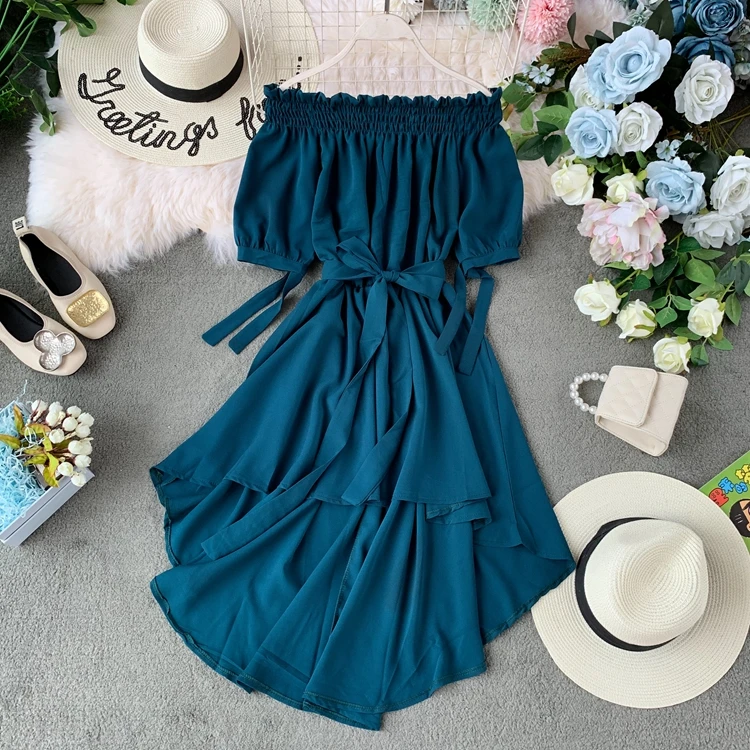 Женское шифоновое платье с открытыми плечами, повседневное асимметричное Бандажное платье с оборками, модель 2022 на лето, 22291
