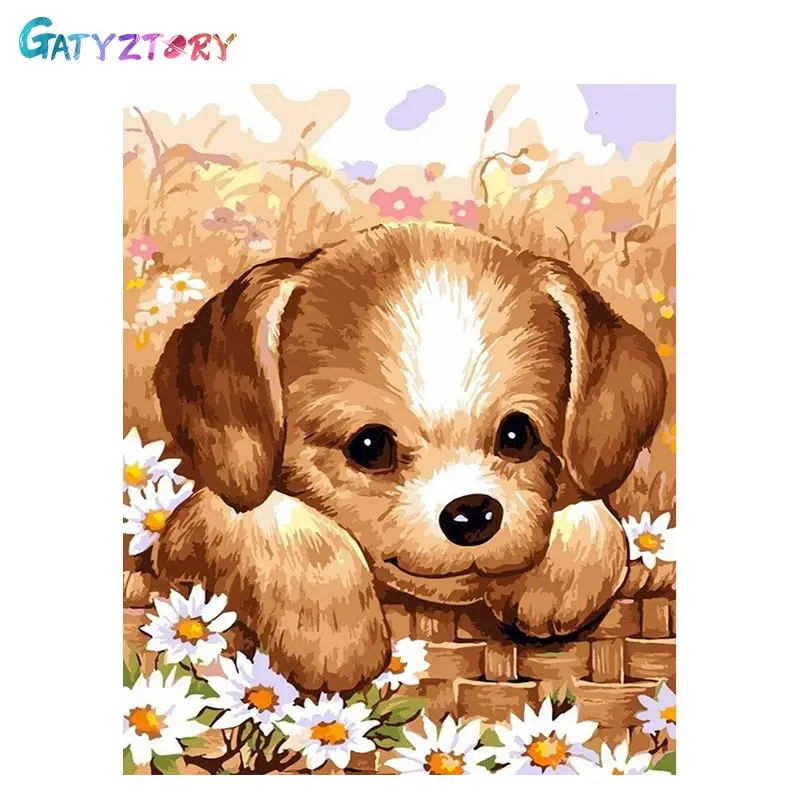 DIY Краски ing по номерам комплект с изображениями цветов и животны...