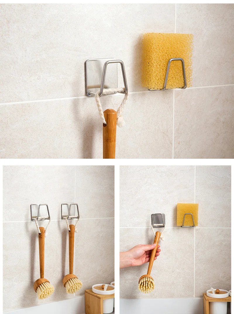1. Материал из нержавеющей стали, водонепроницаемый и устойчивый к ржавчине, толстый и не легко деформируется, не выцветает и не отпадает при контакте с водой 2. Трапециевидная конструкция, легко сливается, ее можно использовать для очистки салфеток и стальных шаров и т. д. 3. Самоклеящаяся + настенная стойка для хранения с сильным клеем на спине, поэтому она не попадет в контакт с водой. 4. Это также декоративный крючок на стене, с простым и элегантным внешним видом, чтобы украсить вашу кухню и ванную комнату